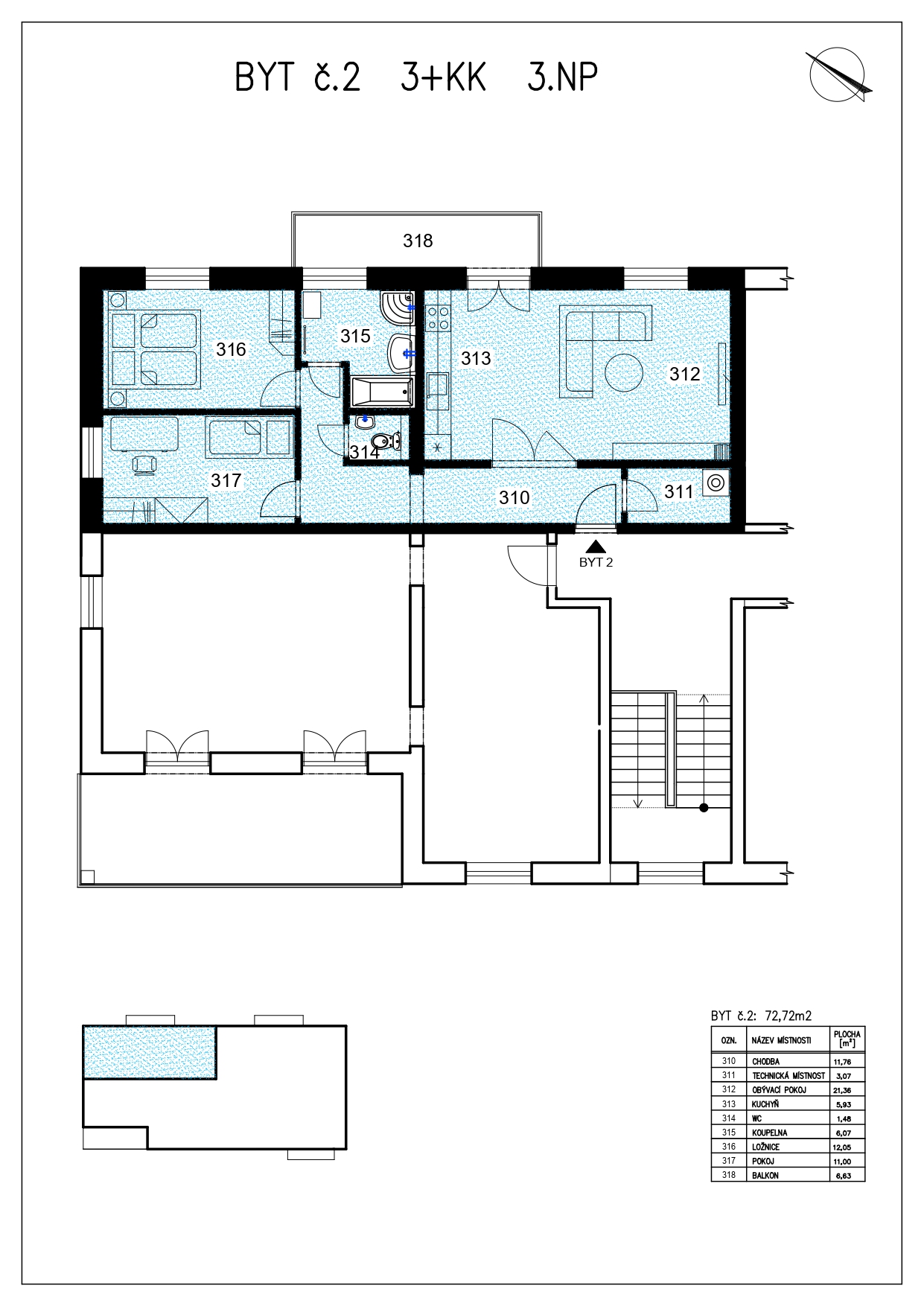 Následuje plánek bytu, který ukazuje inteligentní dispozici jednotlivých místností. Uvidíte, jak je byt efektivně uspořádán, aby poskytoval maximální pohodlí a prostor pro život. Věříme, že si tento prostor zamilujete, a navštívíte nás co nejdříve.