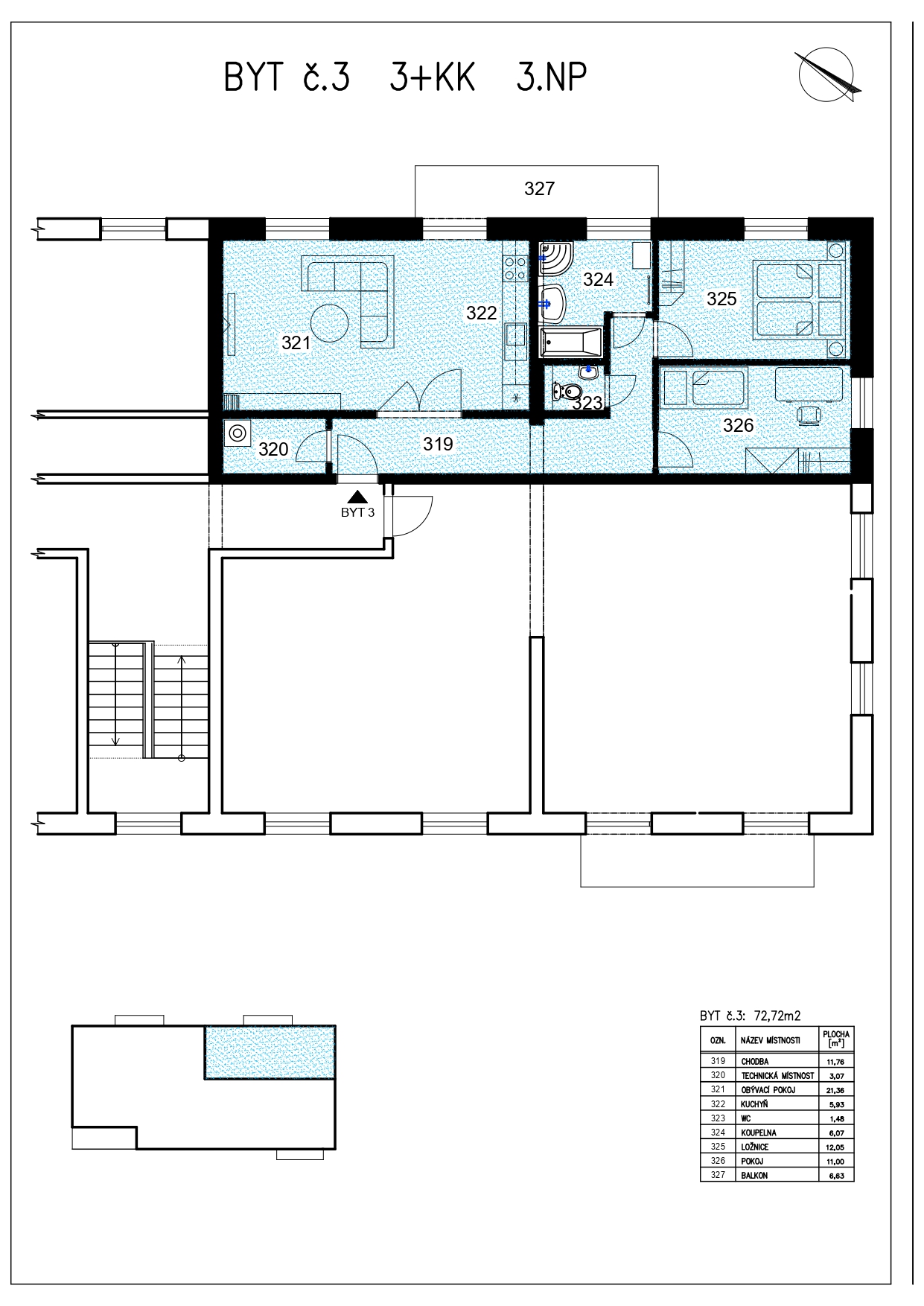 Následuje plánek bytu, který ukazuje inteligentní dispozici jednotlivých místností. Uvidíte, jak je byt efektivně uspořádán, aby poskytoval maximální pohodlí a prostor pro život. Věříme, že si tento prostor zamilujete, a navštívíte nás co nejdříve.